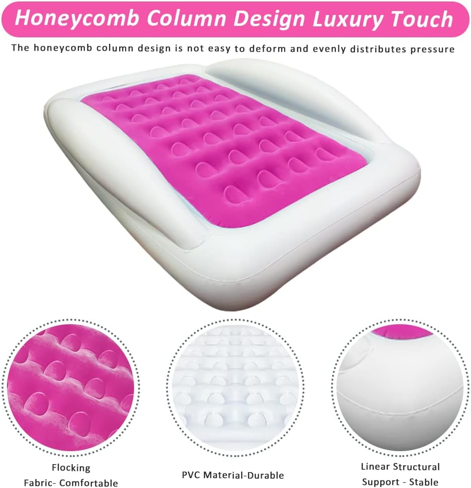 Fahuac Toddler Air Mattress Inflatable Kids Travel Bed Portable Kids Air Mattress with Sides,Suitable for Travel, Home Guest, Garden Grass Play (Rose Red)